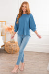 The Love Is Never Lost Modest sweater is the perfect top for every outfit!! The beautifully soft brushed waffle fabric, quarter length cuffed sleeves, and classy blue color, we simply can not get enough of it! Make sure to get yours today!