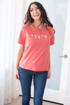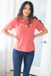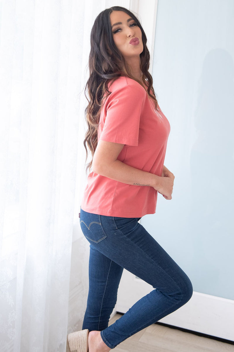 We love flowers and we love them even more on this classy little top! This t-shirt style top has the perfectly placed embroidered flowers. You will be reaching for this top everyday!
