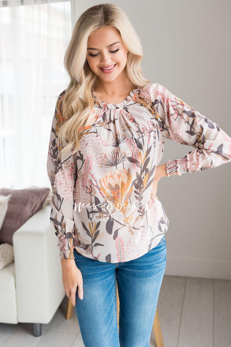 Make A Wish Modest Floral Blouse