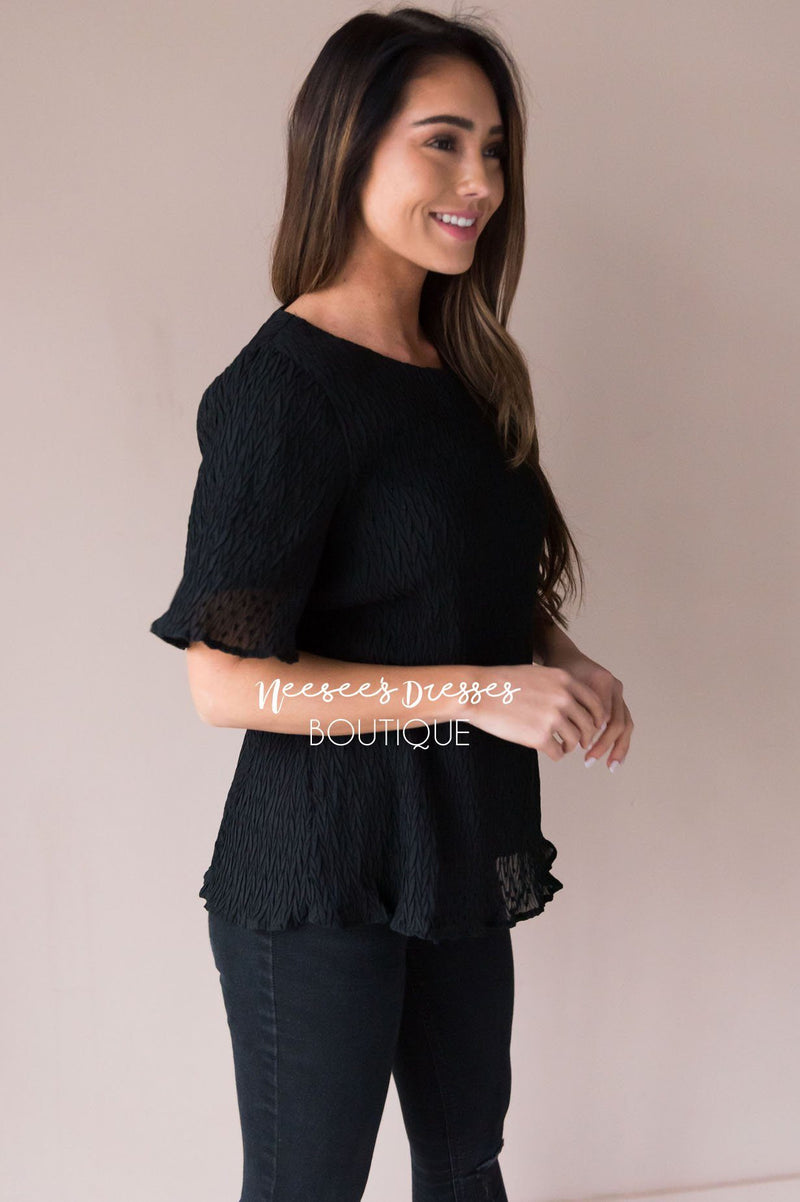 Soft, flowy elegant stunner! This lovely crepe top features flowy sleeves and fit, is fully lined and we really can not get over the darling delicate dotting on the sheer crepe'd material. This is one you definitely do not want to miss out on! Get yours today!