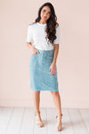How absolutely fantastic is this high waisted soft corduroy skirt? We just adore the deep square front pockets and the trendy modest fit and length! We know with a cute top and some of your favorite shoes this skirt will serve you well!