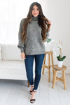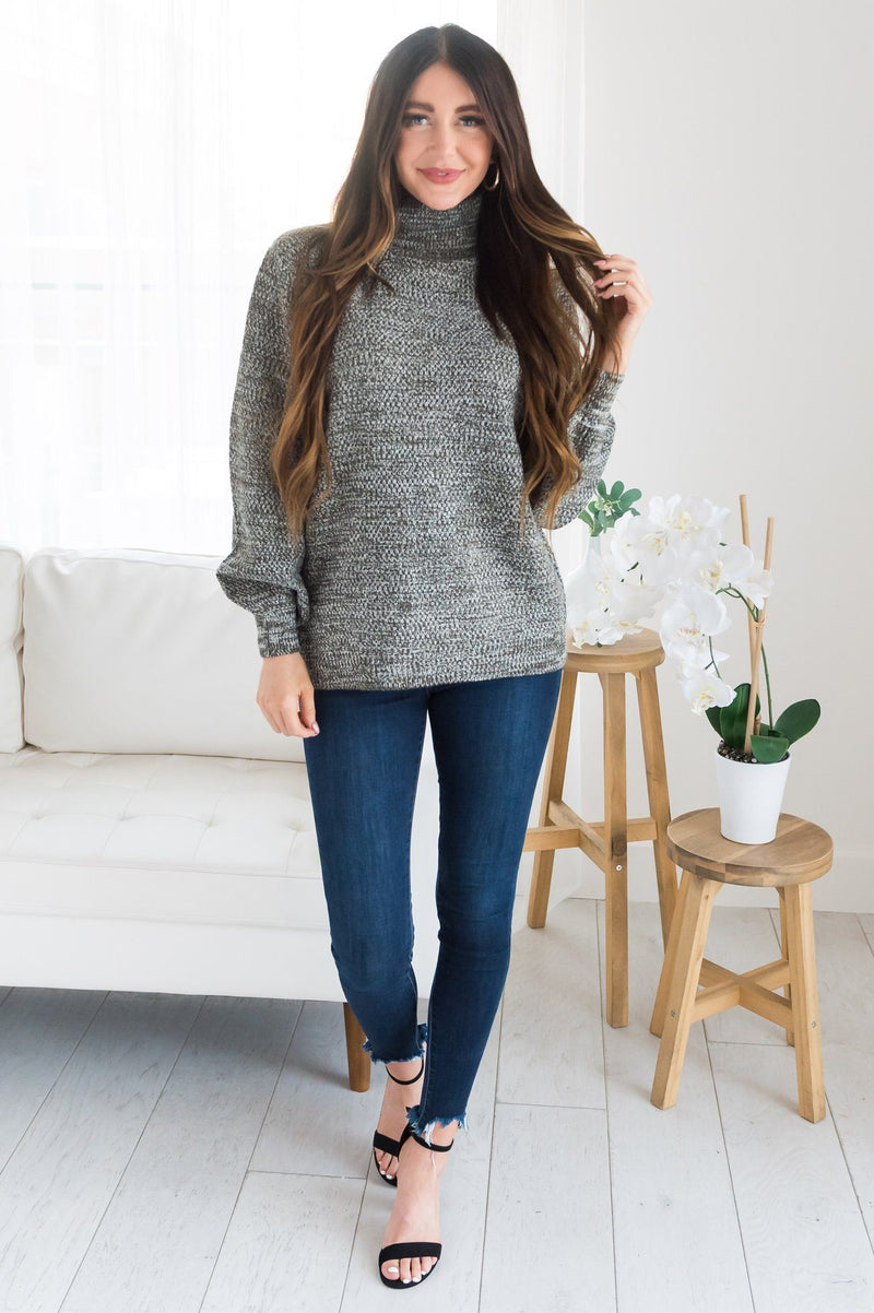Meet this cute new turtleneck sweater! We are obsessed with the dark olive green color, and we also love the thick yet super soft fabric, long puff sleeves, and marled knit pattern! This turtleneck is perfect for any fall outfit, make sure to get yours soon!
