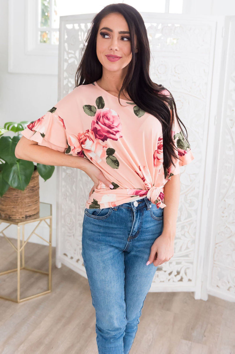 This top is a simple natural beauty! We love the feminine floral print, double ruffle short sleeves and the loose flattering fit! This top is the perfect pair for any outfit! Get yours today!