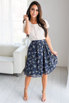 Navy Chiffon Floral Pocket Skirt