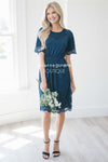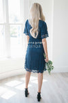 Our new favorite addition to our Summer line! Not only is this dress beyond beautiful, the lace is soft and it is so comfortable too! Navy lace dress features half sleeves with scallop lace edges, an elastic waist and scallop lace edge hem. This dress is also fully lined!