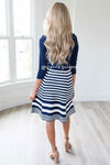 Navy & White Striped Sweater Knit Dress