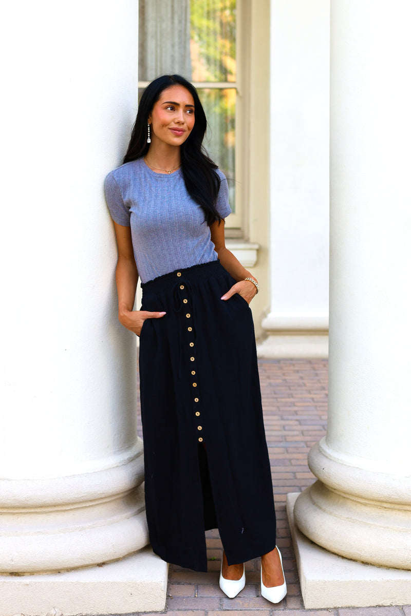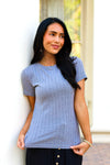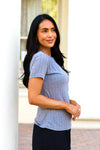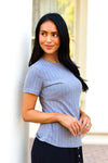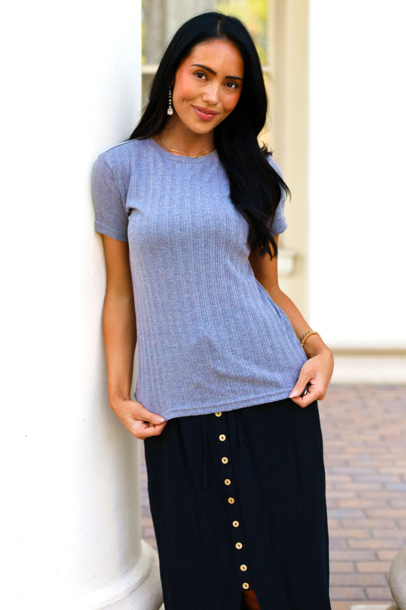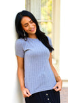The Never Forgotten Pointelle top is everything! We love the flattering ribbed fabric, adorable iron color, short sleeves and slimming fit. Grab yours today and start pairing with your favorites skirts and pants today!