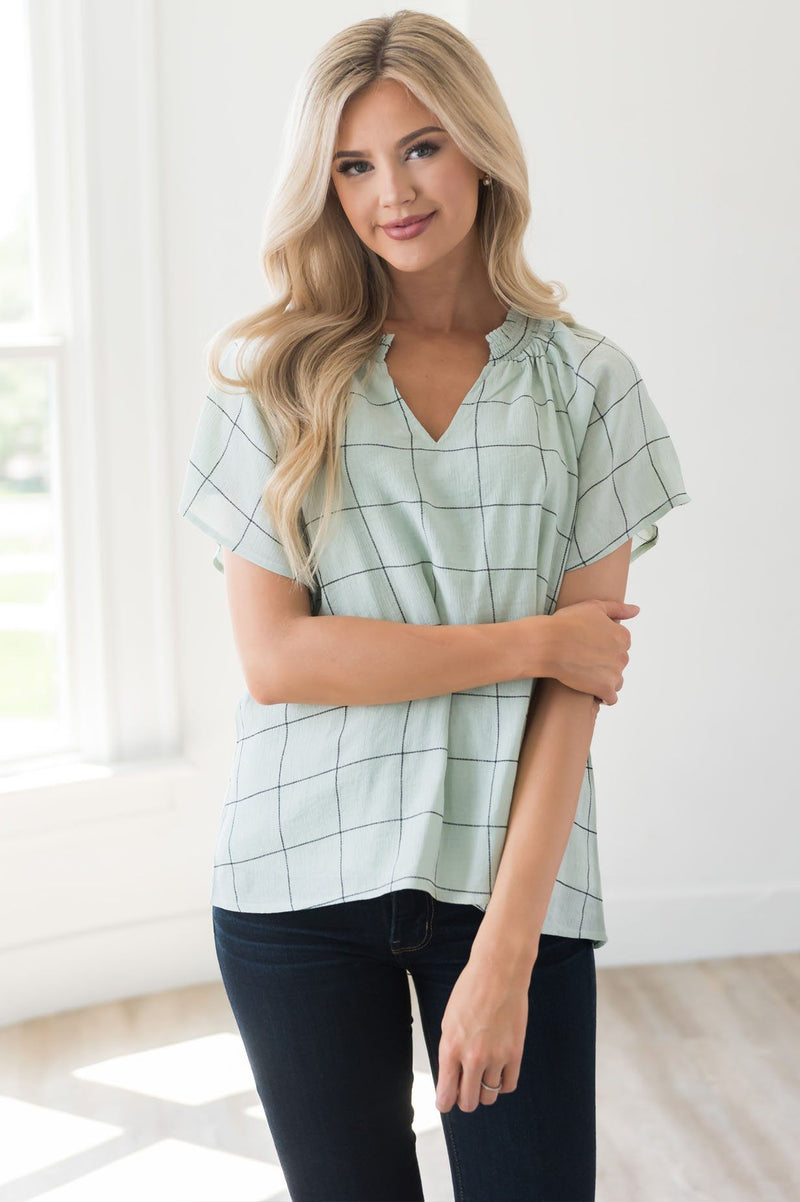 This classic windowpane pattern, smocked neckline, and flutter sleeves are just perfect together! We know this top paired with a skirt or jeans will only enhance the elegance and class this shirt radiates! The trendy design is absolute fabulous!