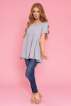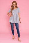 The most darling babydoll top is here and needs to be a part of your wardrobe! Featuring the perfect flowy fit, modest round neckline, & short sleeves Get yours today before it's gone and you regret it!
