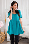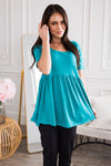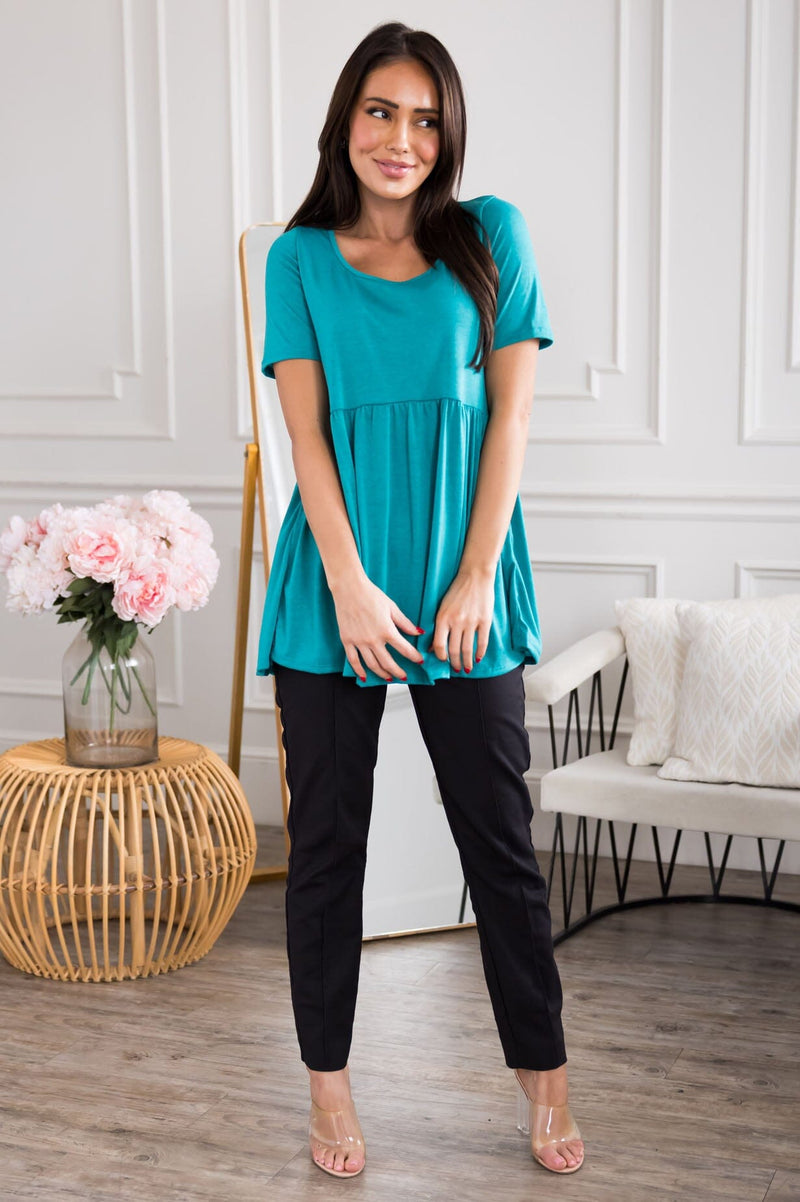 The most darling babydoll top is here and needs to be a part of your wardrobe! Featuring the perfect flowy fit, modest round neckline, & short sleeves Get yours today before it's gone and you regret it!
