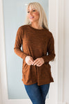 Who doesn't love super soft blouses?! We sure do, that's why we got these gorgeous sweater tops in! We love the marled rust color, front pocket, brown button detailing on the left side, long sleeves, and the comfiest material ever! This will be your new favorite sweater this season!