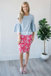 This dusty blue top features the perfect pearl detailing on the front with 3/4 length bell sleeves!