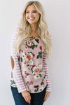 Pink Stripes & Floral Elbow Patch Top