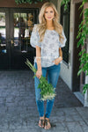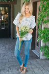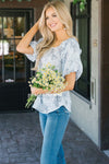 Pinstripe Floral Bubble Sleeve Top