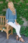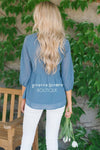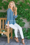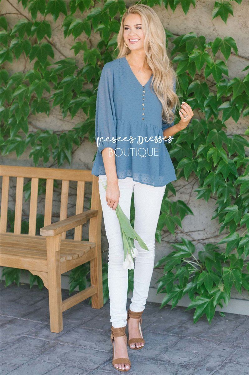 This adorable top features small polka dot embroidered details, a v neck line, button front and a baby doll waist!
