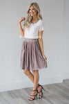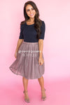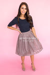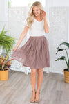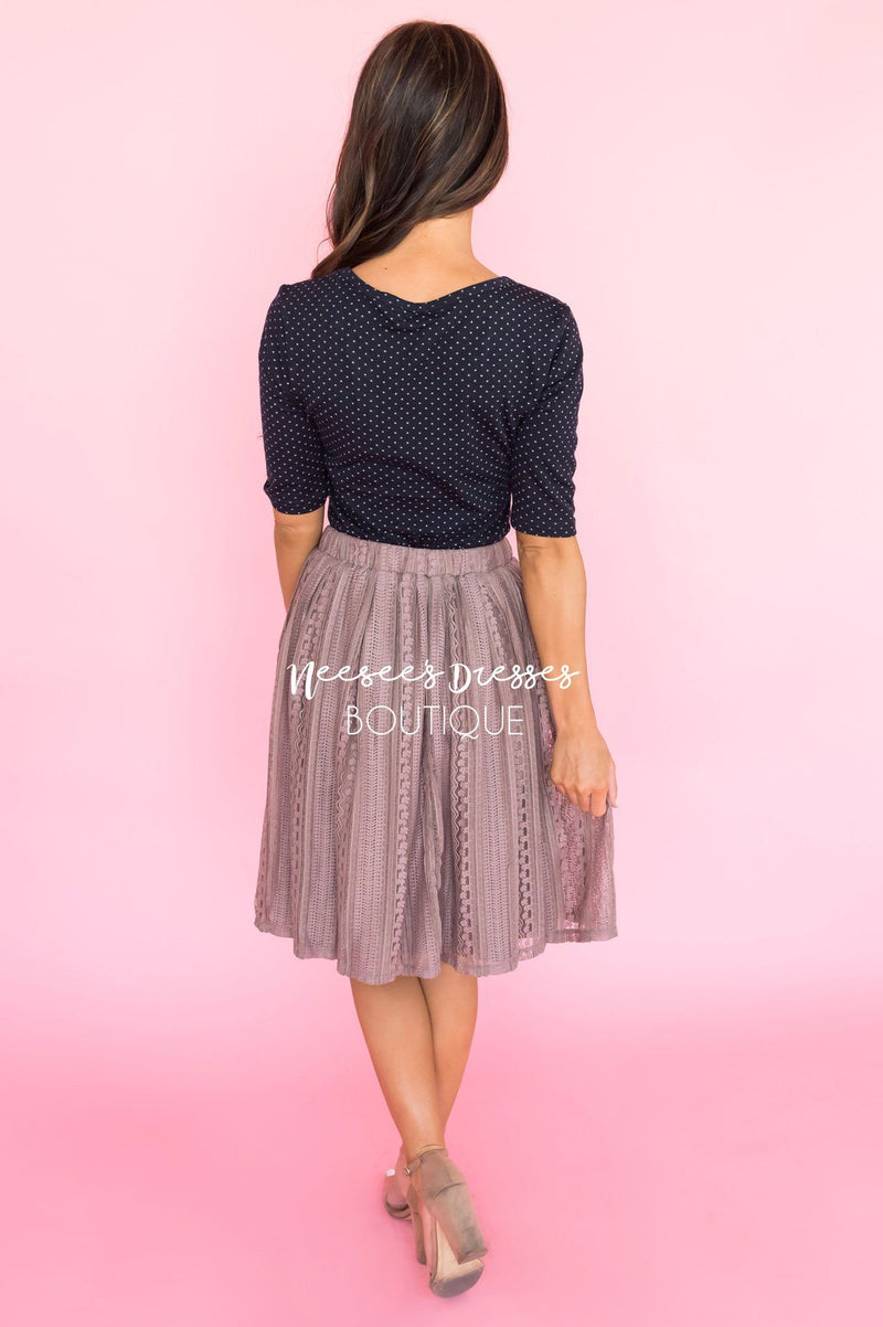 Our new dusty mauve lace skirt is a must have! This skirt features an elastic waist band with gorgeous floral lace over lay. This skirt is also fully lined!