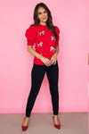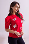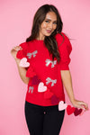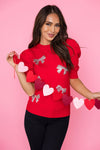 The perfectly placed sequin bows on this sweater stole our hearts! Paired with the darling puff sleeves and fit of this top, it is bound to the ultimate match with any outfit! Get yours today!
