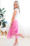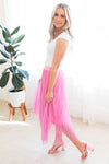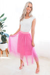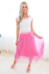 We are seriously in love with this darling feminine tulle skirt! It is the perfect modest length, has cute pleating, a perfectly flattering fit with it's elastic waistline, and the most stunning bubblegum pink color! Get yours today!