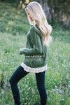 This sweater features ribbed cable detailing, a rounded neck and a scallop lace hem!