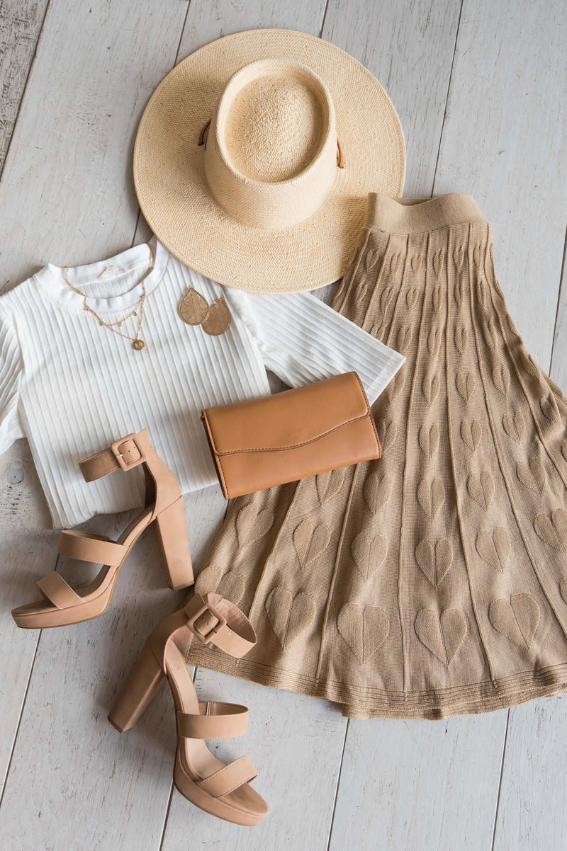 Say hello to the most darling modest skirt you will ever own! We are loving the flattering beige with beautiful heart design. The fit and flare style is a must have for any body shape! Get yours today!
