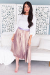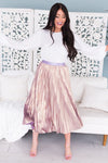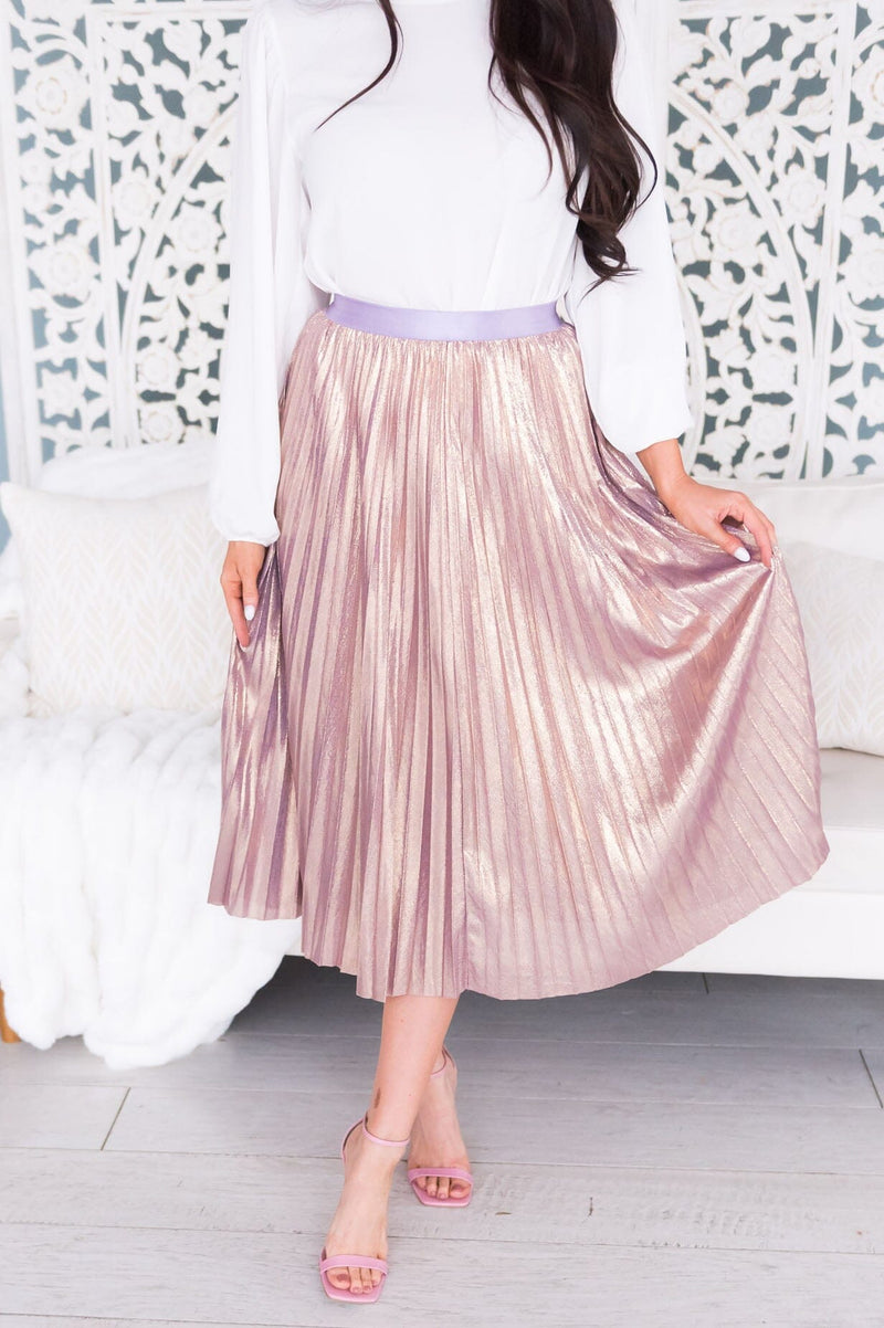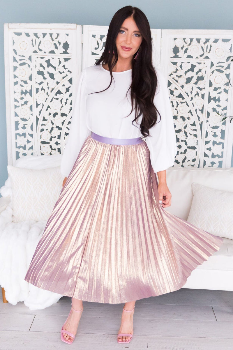 Christmas and New Years are right around the corner this skirt will be just the addition needed for all your holiday parties! Grab the perfect modest pleated shimmer lavender skirt to pair with all of your blouses and sweaters! Get yours today, before they are gone for good!