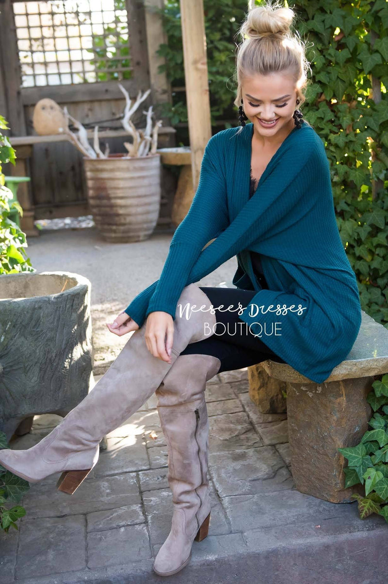 You have to grab this classic cardigan for your wardrobe, it is perfect for layering from season to season! Lovely dark teal cardigan features an open front, side pockets and long sleeves.