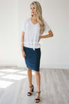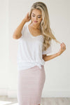 So soft, so cute, so simple! Pair this perfect white top with jeans or tucked into a skirt for your Sunday outfit. Features a v-neckline, a front pocket detail and short cuffed sleeves!