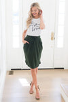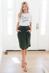 How perfect is this skirt? Simple and so easy to wear! Featuring the cutest stripes, pockets and tie waist.