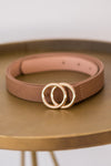 Say hello to these cute new belts!! We love adorable accessories, so we couldn't pass on getting these in! This belt is light brown and has a gold double o-ring clasp! Add this belt to any outfit and you're sure to look stunning!
