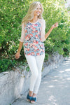 It doesn't get any cuter than this top, it is absolutely perfect for casual days. This top features a light blue bodice with a Paisley Print and 3/4 length navy base ball sleeves.