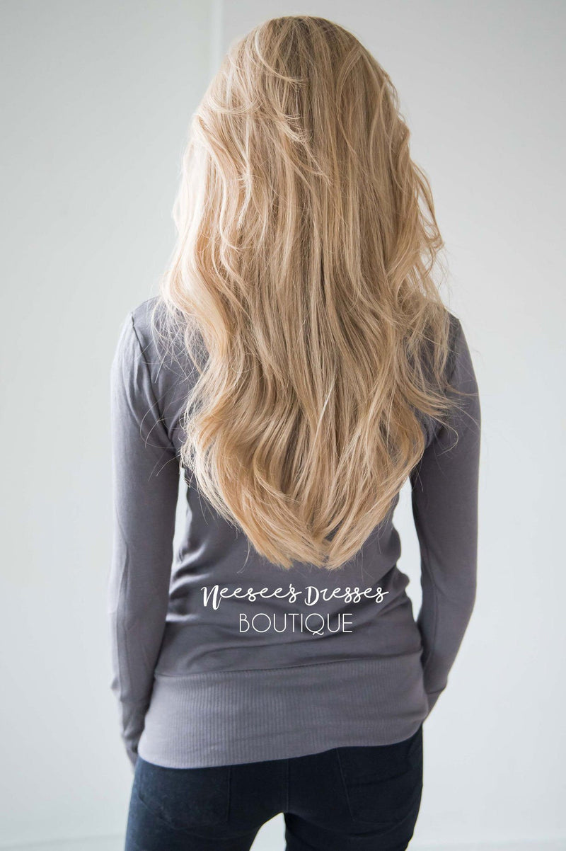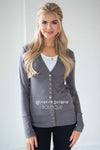 Talk about adorable, we are obsessed with this new cardigan! Perfect for layering this fall season, you are going to love this super soft and cute cardigan. Gray cardigan features long sleeves and snap buttons up the front.