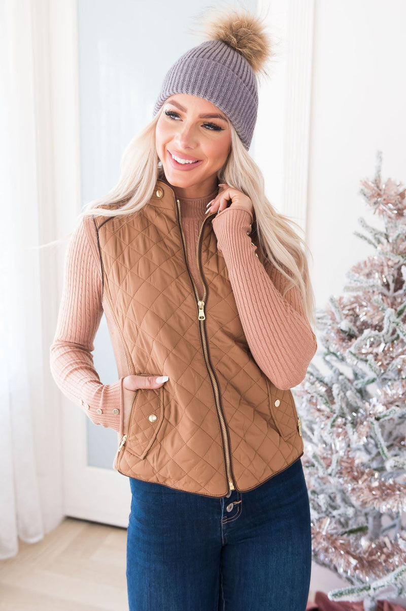 Our Snowy Days Vest is oh-so darling! We love cute vests for the winter, and this is one of our faves! This jacket has the most amazing features, such as the gorgeous light latte color, golden snap buttons, pockets, and a pretty quilted texture! This jacket is the perfect addition to any winter outfit, make sure to get yours soon!