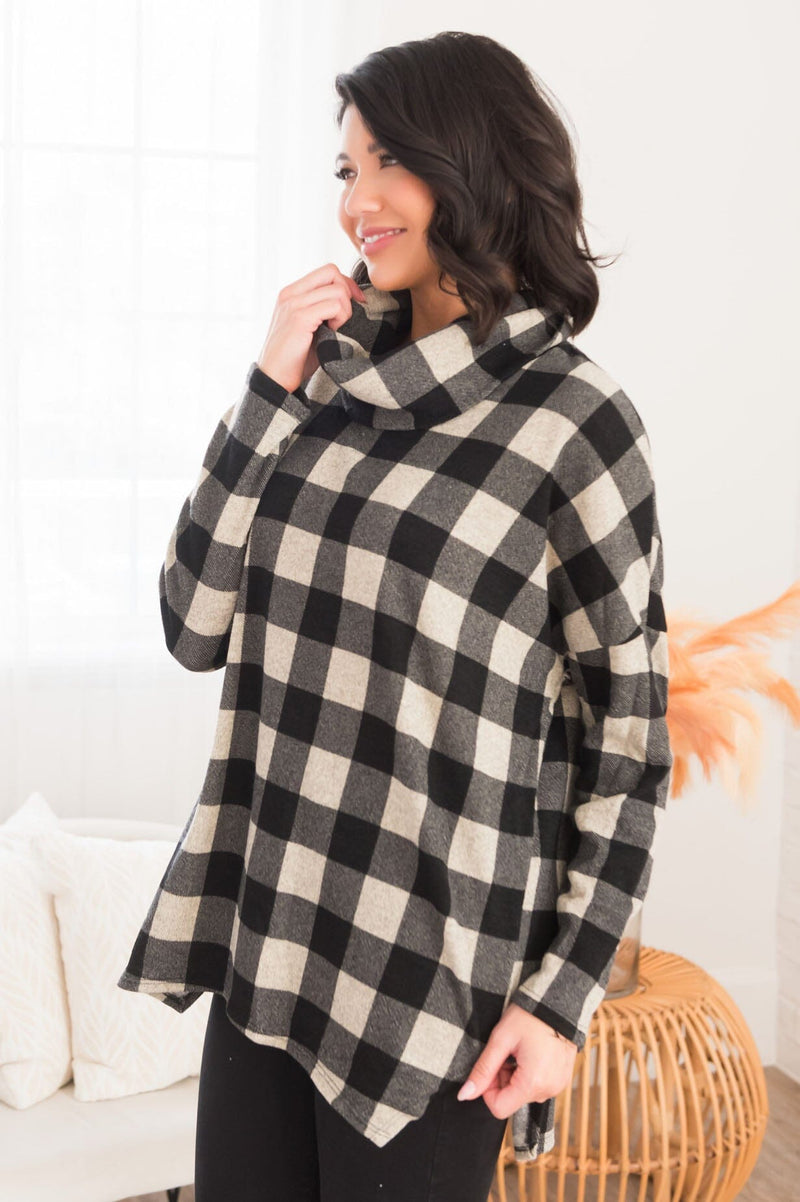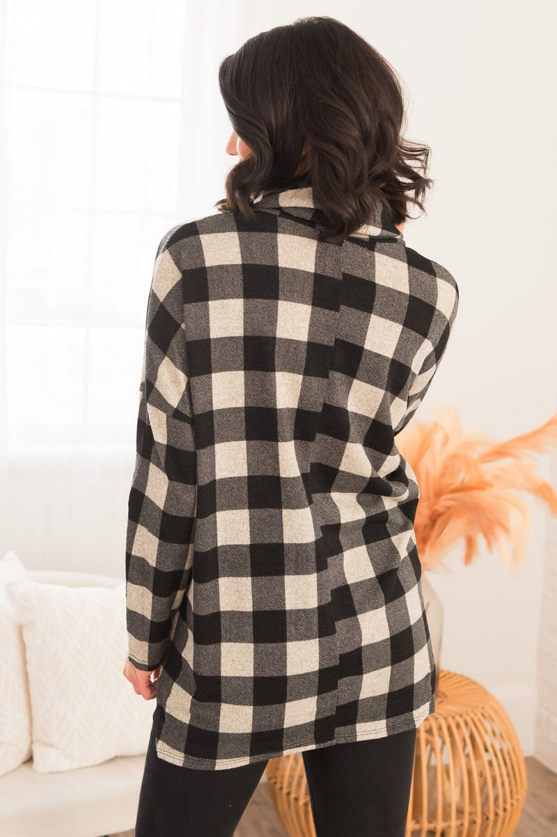 Ready for your new favorite top!? This gorgeous buffalo plaid dolman print has a cowl neckline, uber soft feel and long cozy sleeves! It's the perfect cozy up go to and we know will be a needed addition to every wardrobe!