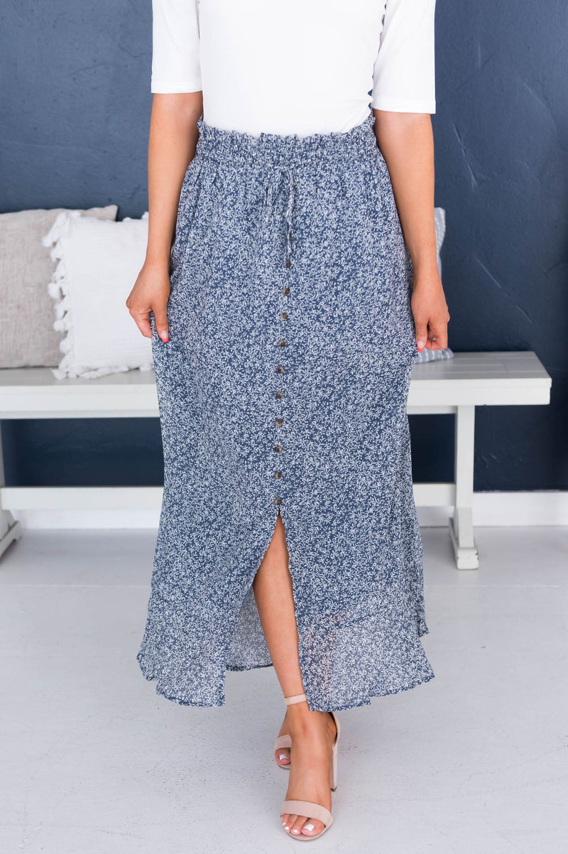 We can't get enough of our newest Spring Blooms skirt! They are so flattering on every body type, and are perfect for any occasion! They have all the best features, such as an elastic band waist, perfect maxi length and feminine faux button front design. Make sure to get this darling skirt for your Spring wardrobe!
