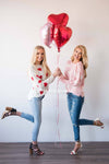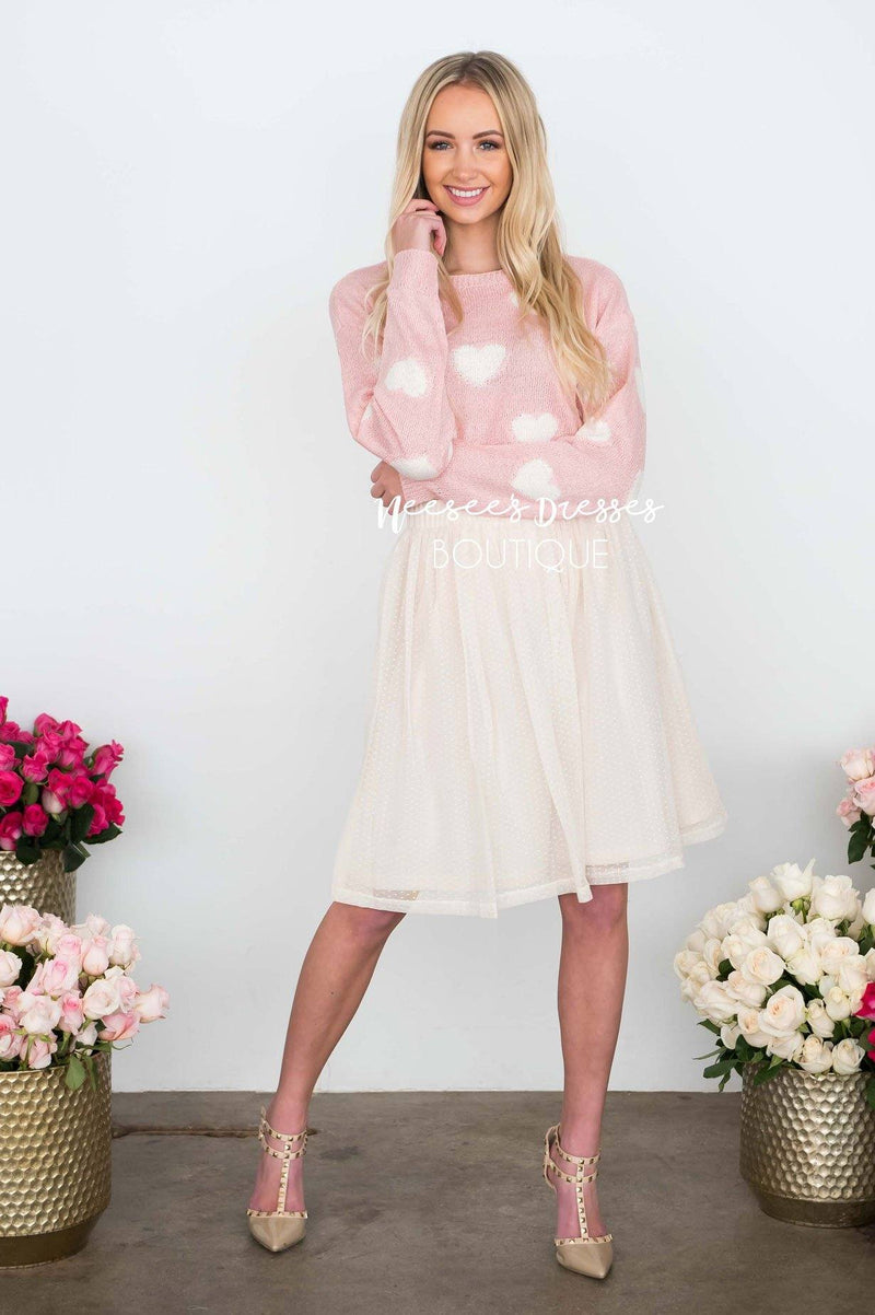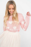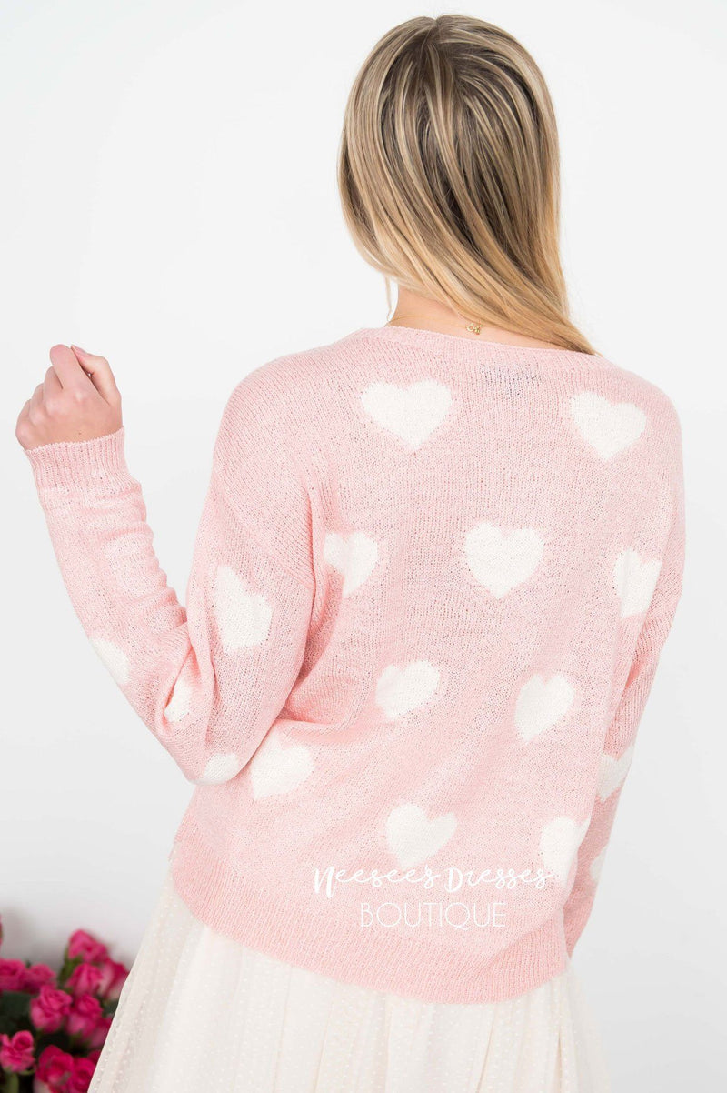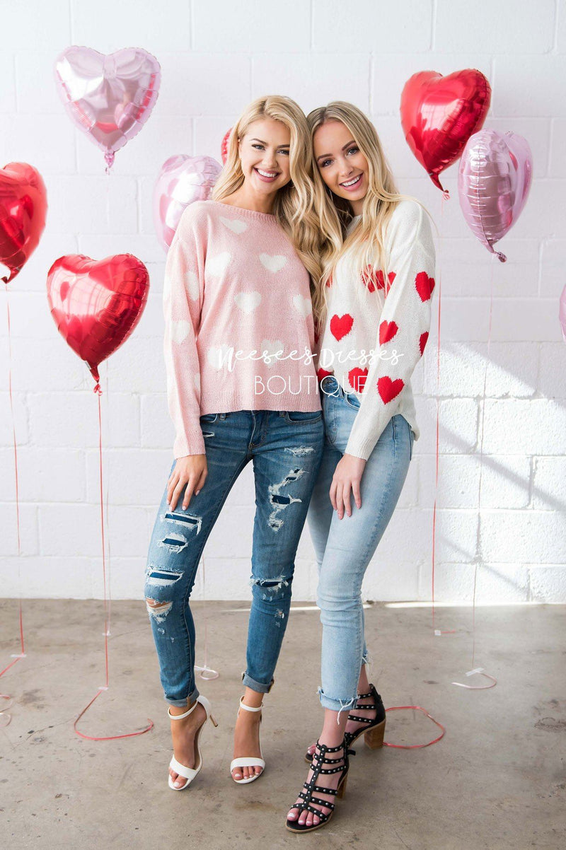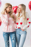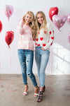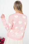 Our Sprinkled with Hearts Sweater is as cute as they come this Valentine's Day! Light weight, pink knit sweater features a cream heart print.