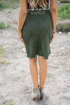 Create the perfect comfy fall outfit with this skirt! This olive suede pencil skirt features a floral embroidered detail and a back zipper!