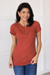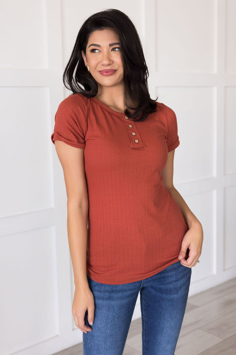 The Sunset Watching top is the going to be your perfect go to top! Featuring cozy waffle ribbed fabric, short cuffed sleeves and a classy henley style button neckline. Get yours today!