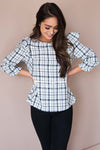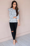 In need of a stylish new work top? We have got you covered! Our new City Casual Ruffle Shoulder Top features a feminine cinched sleeve, a round neckline, a keyhole button back, and a sleek fit. You can wear this top to work, to church, or any fun event! Grab it before it sells out!