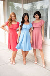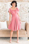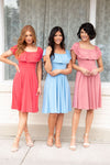 How adorable is our new, modest, Josie Dress! We instantly fell in love with this easy-to-wear dress. This dress features a gathered ruffle neckline and fit and flare skirt.