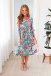 The Adilene is simply stunning with it's delicate floral print, classic 3/4 length sleeves, flowy skirt and a big plus, its super soft and stretchy material. This beauty is one you are not going to want to miss!