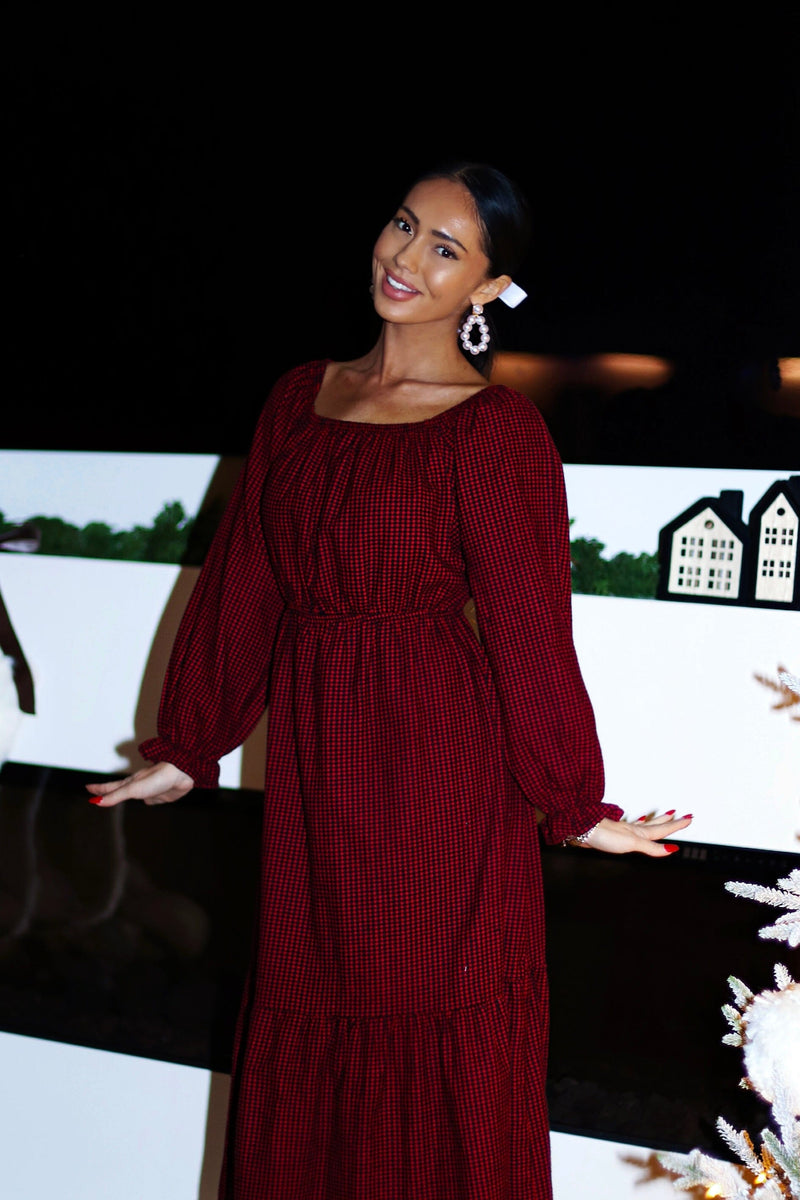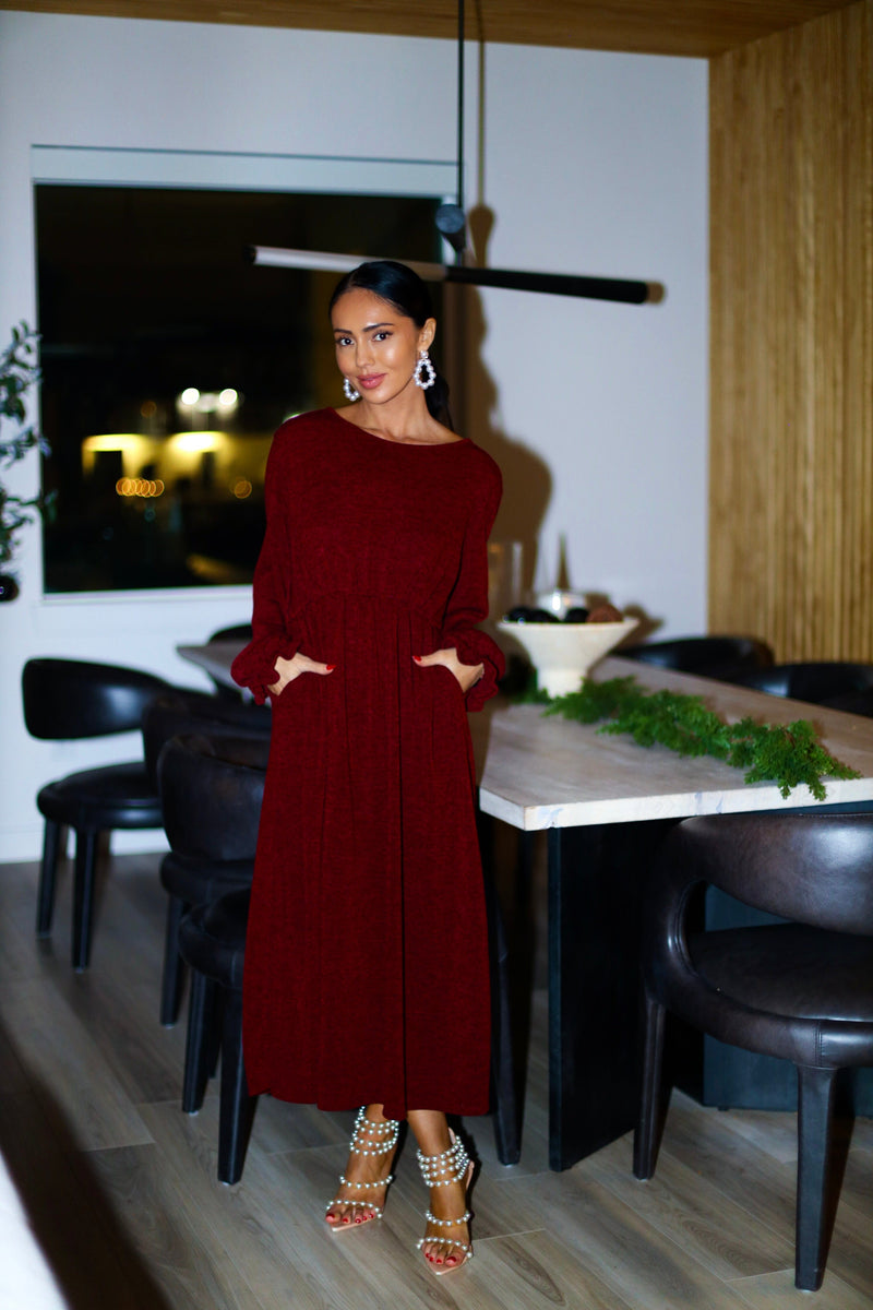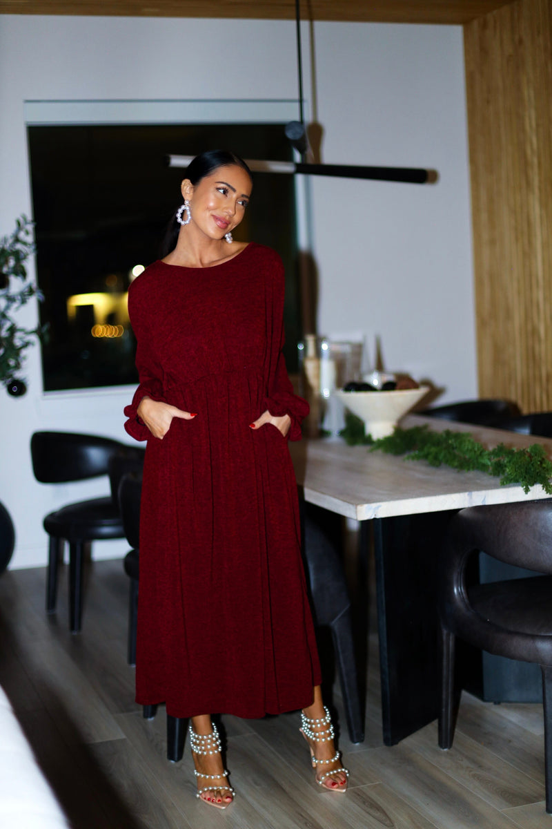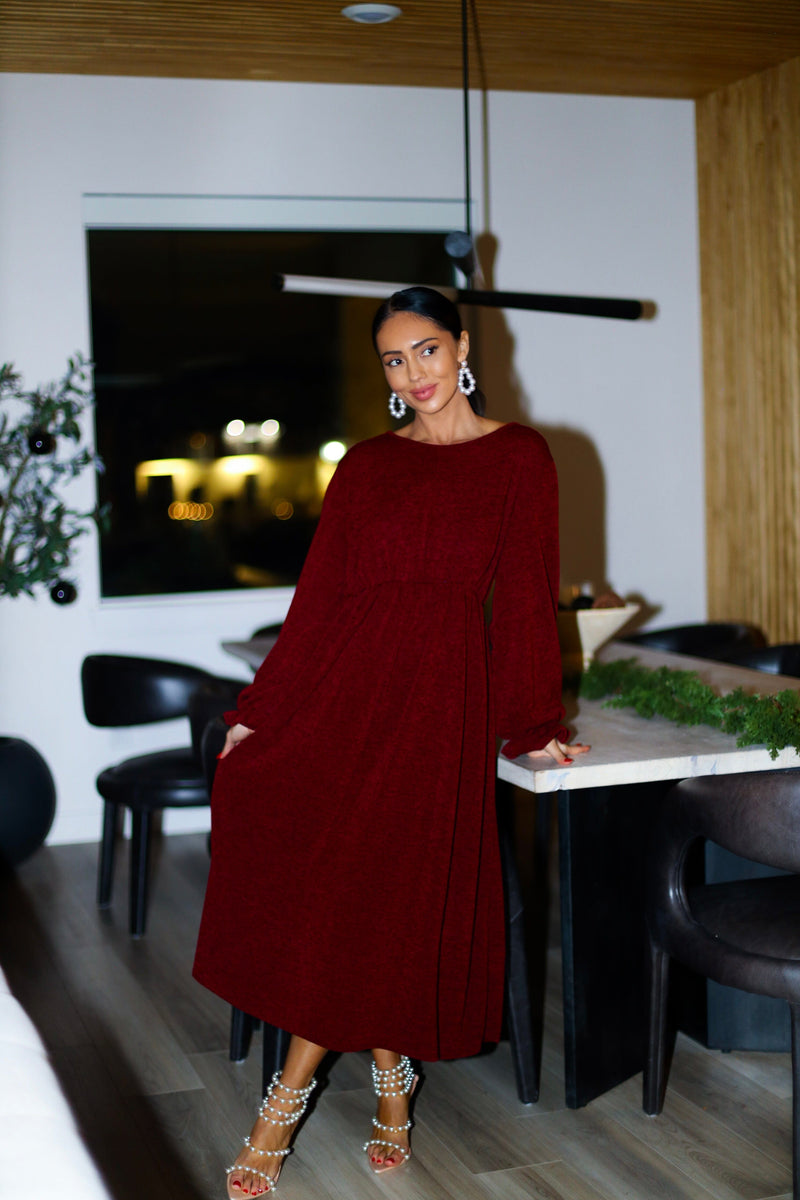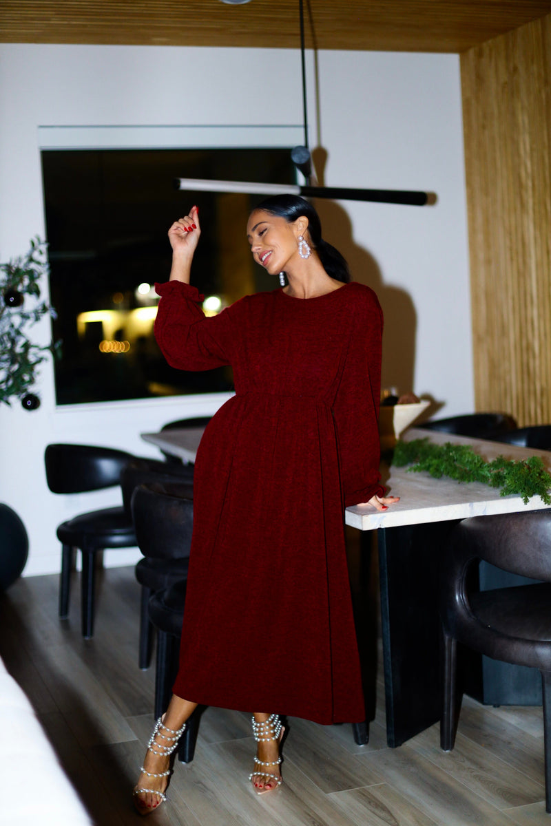 The new Alabama dress will be nothing but darling on you! The gorgeous burgundy color is a beautiful addition to any wardrobe! We are so in love with the tiered skirt detailing, long sleeves, elastic waist, and soft modest v-neckline! This is the perfect grab your favorite cardigan and go type of dress!
