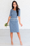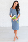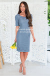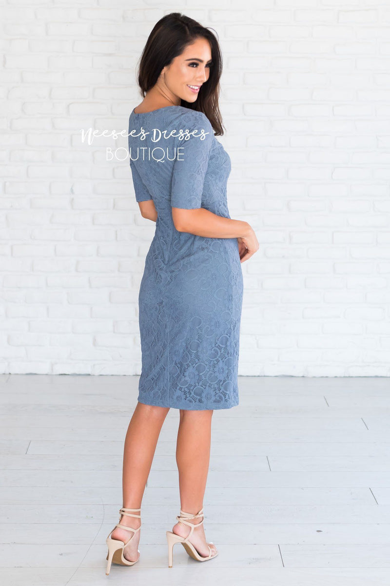 Who doesn't love an absolutely beautiful lace dress! This stunning Slate Blue lace dress is fully lined, features half sleeves, a round neckline and has a zipper closure. The romantic dress will not disappoint and is forever timeless!