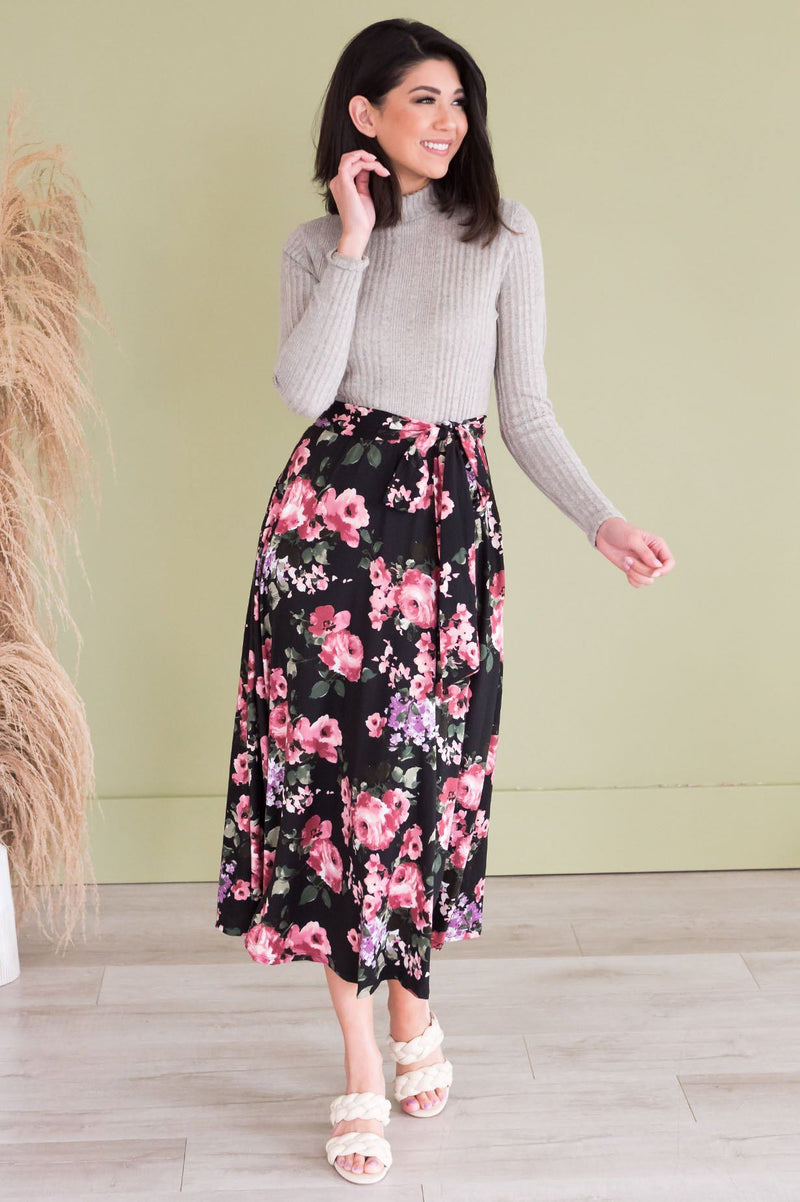 The Alba has stole our hearts! From the darling floral print skirt, to the belt tie waist and long sleeved ribbed bodice, we simply can not get enough! Get yours today before these beauties are gone for good!