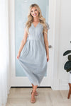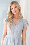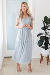 Allow us to introduce you to your new favorite dress, the Alessia! This dress is everything you could want in a maxi dress and more! Featuring short lace flutter sleeves, a V-neckline, a lace bodice and waist, and a gorgeous light smoke grey color. This one is a must have for sure!