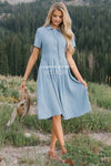 The Alexis is absolutely stunning! Twirl into fall in this perfect dress! This dress features a button front, a collared neck with a tie, a fitted wait band with pleats and short sleeves! This dress is also nursing friendly and lined!