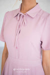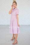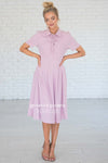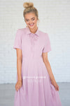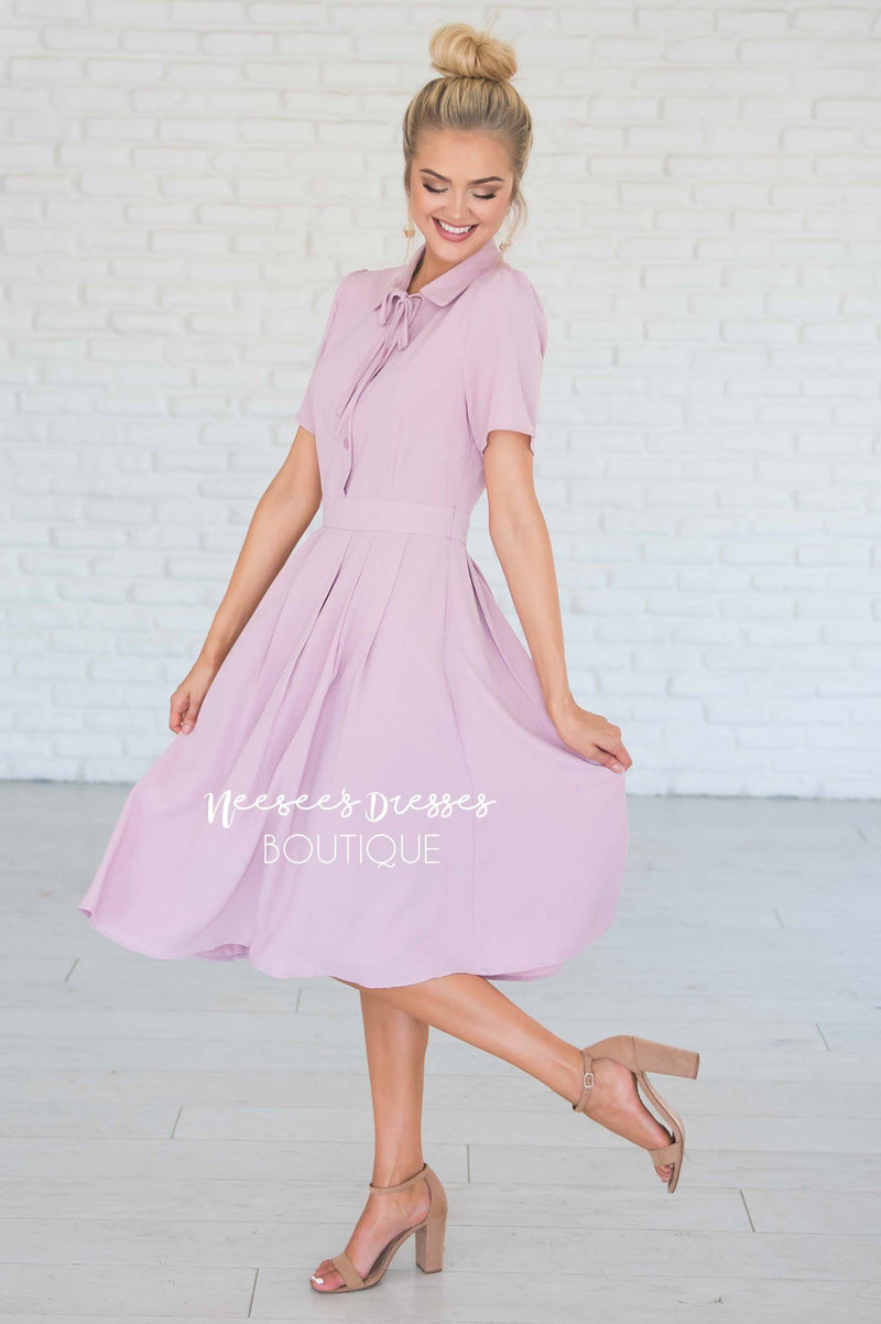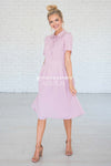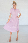 WOW! The Alexis is absolutely stunning, and is perfect for all seasons! This dress features a button front, a collared neck with a tie, a fitted waist band with pleats and short sleeves! Add it to your cart before it sells out!