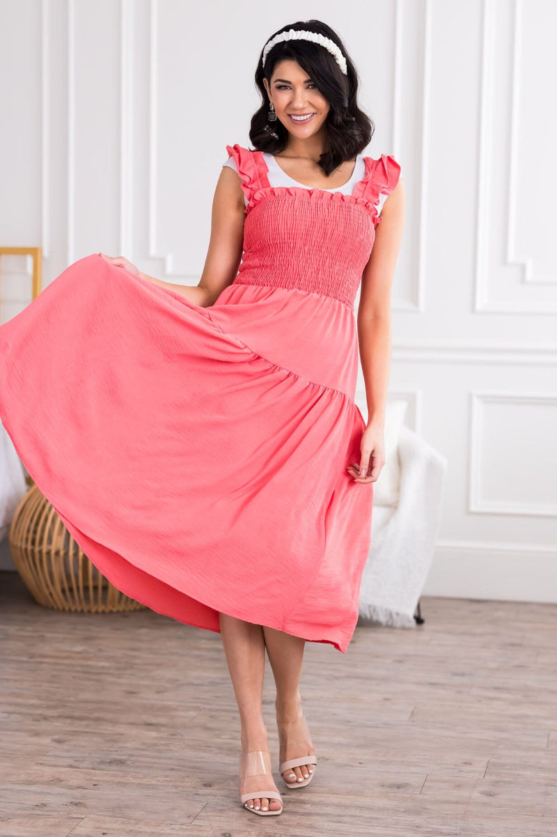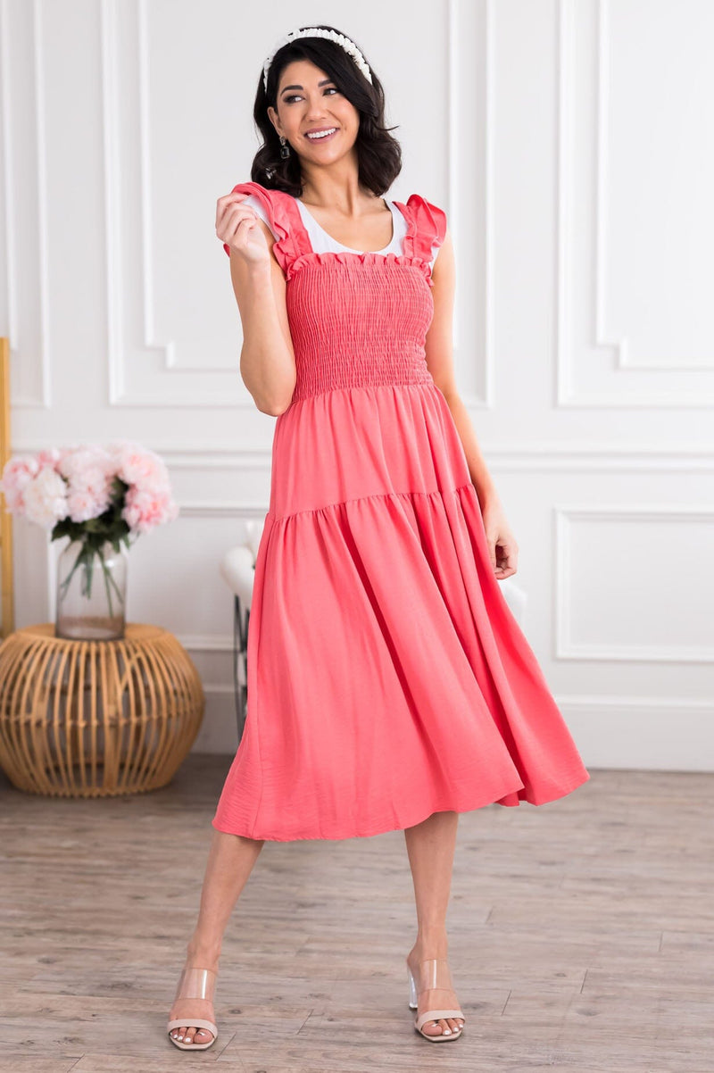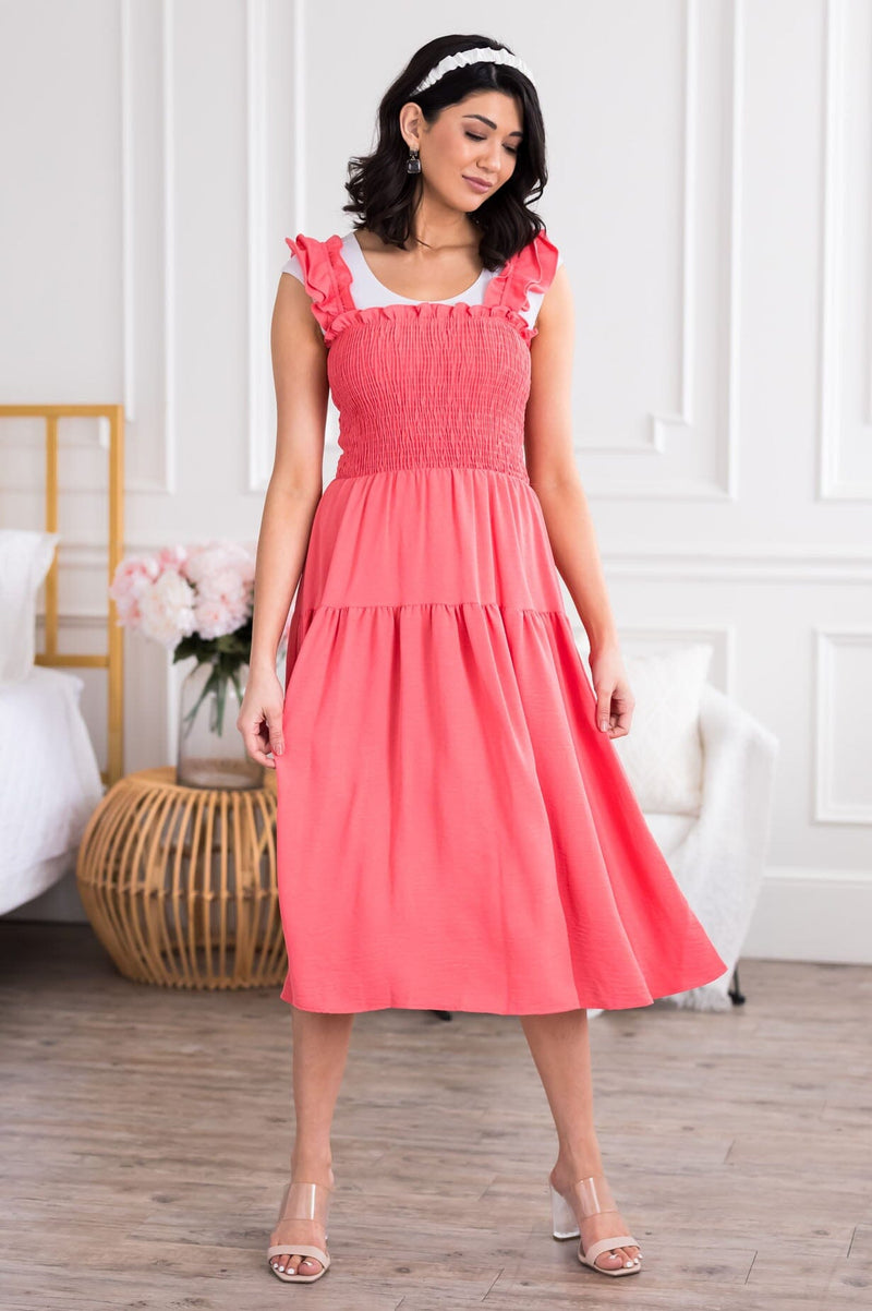 The Ali twirled it's way in and stole the show! This lovely smocked beauty has feminine elastic double ruffled straps and twirl worthy drop tier ruffle skirt. It has all of our favorite features in one modest beauty! Get yours today!