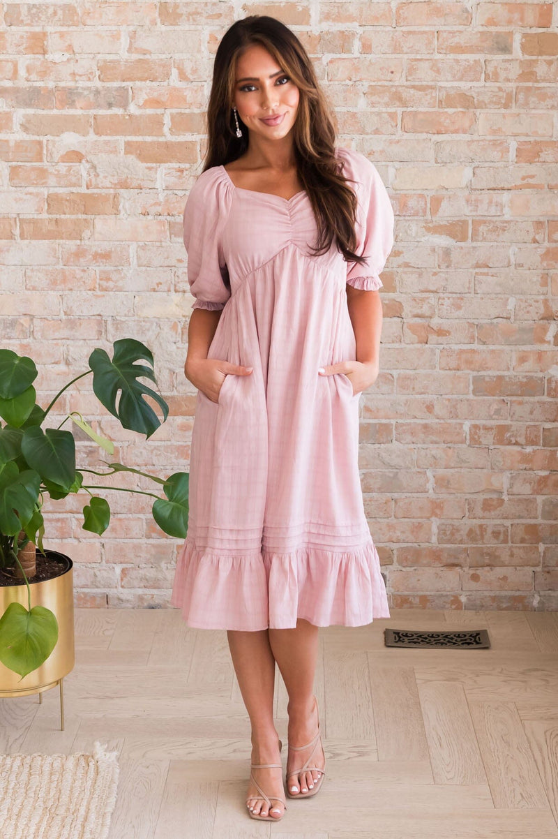 Kickstart your Fall wardrobe with the new Alice dress! We simply adore the delicate textured material, lovely sweetheart neckline with flattering and comfy smocked backing, pockets and ruffle hem skirt beyond measure! This is a true must have for everyone!