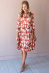 Say hello to the New Alisa! We are so confident you'll love this darling little dress as much as we do! It has some of the very best features to include a gorgeous rich sedona orange floral pattern, rounded neckline, 3/4 length sleeves and lovely empire waistline with beautiful crochet lace trim. Can you say adorable?! Grab yours today before they're all sold out!