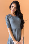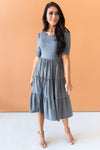This darling modest dress is going to be your next go-to piece! The Alissa has some lovely modest features to include, a modest round neckline, fitted half sleeves with lovely ruche detailing, elastic waist and a flowy tier skirt. Not to mention the classy heather olive color, this one is a must have!